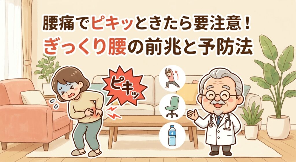 この記事では、ぎっくり腰の前兆である「ピキッとした痛み」の正体から、再発を防ぐための具体的な予防策、そして万が一の初期対応まで詳しくお伝えしていきます。最後まで読んでいただければ、腰の不安を軽くして、日常生活を安心して過ごせるようになるはずです。